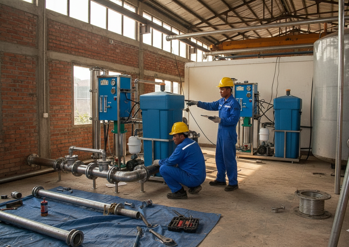 Dokumentasi pemasangan UNG-1500 RO System pada instalasi pengolahan air untuk kebutuhan industri dan fasilitas khusus. Klik gambar untuk memperbesar.